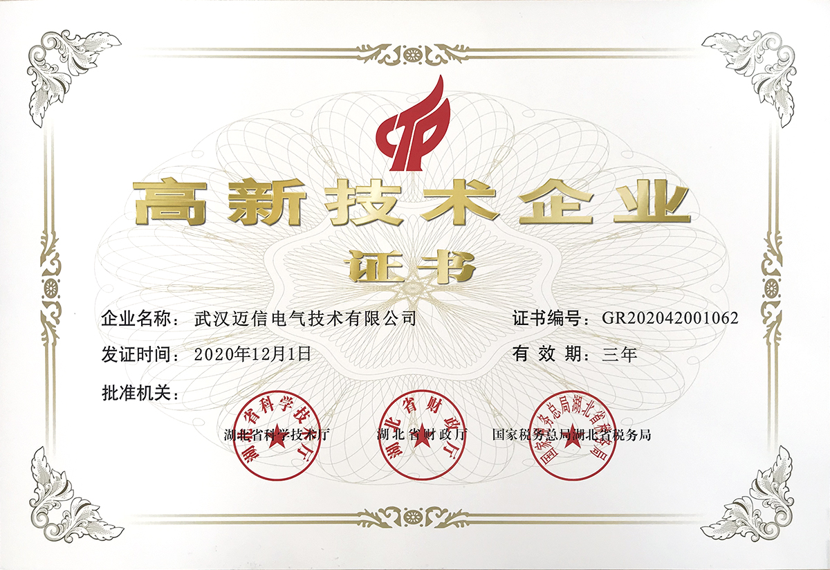 • 高新技术企业 颁发时间:2020年12月 颁发单位:湖北省科学技术厅