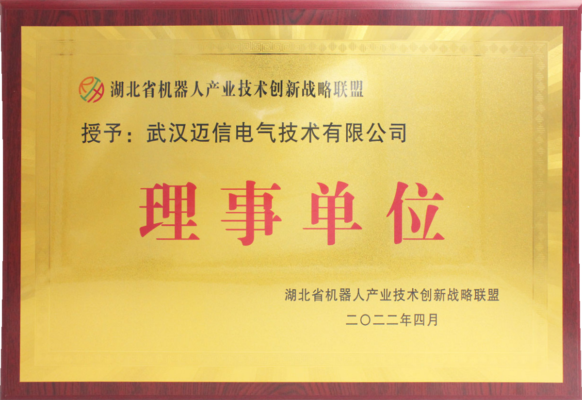 • 湖北省机器人产业技术创新战略联盟理事单位 颁发时间:2022年4月 颁发单位:湖北省机器人产业技术创新战略联盟