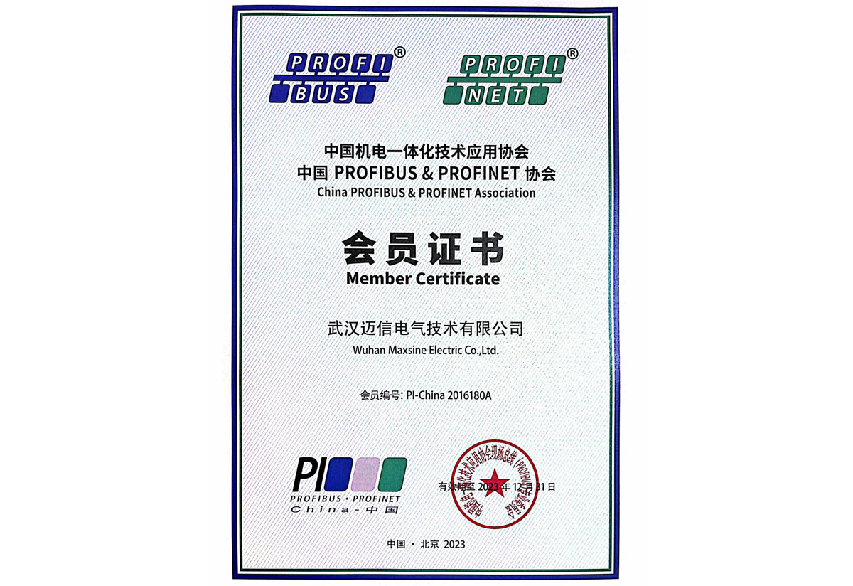 • 2023年度中国机电一体化技术应用单位、中国PROFIBUS&PROFINET协会 会员证书 颁发时间:2023年1月 颁发单位:PROFIBUS&PROFINET协会