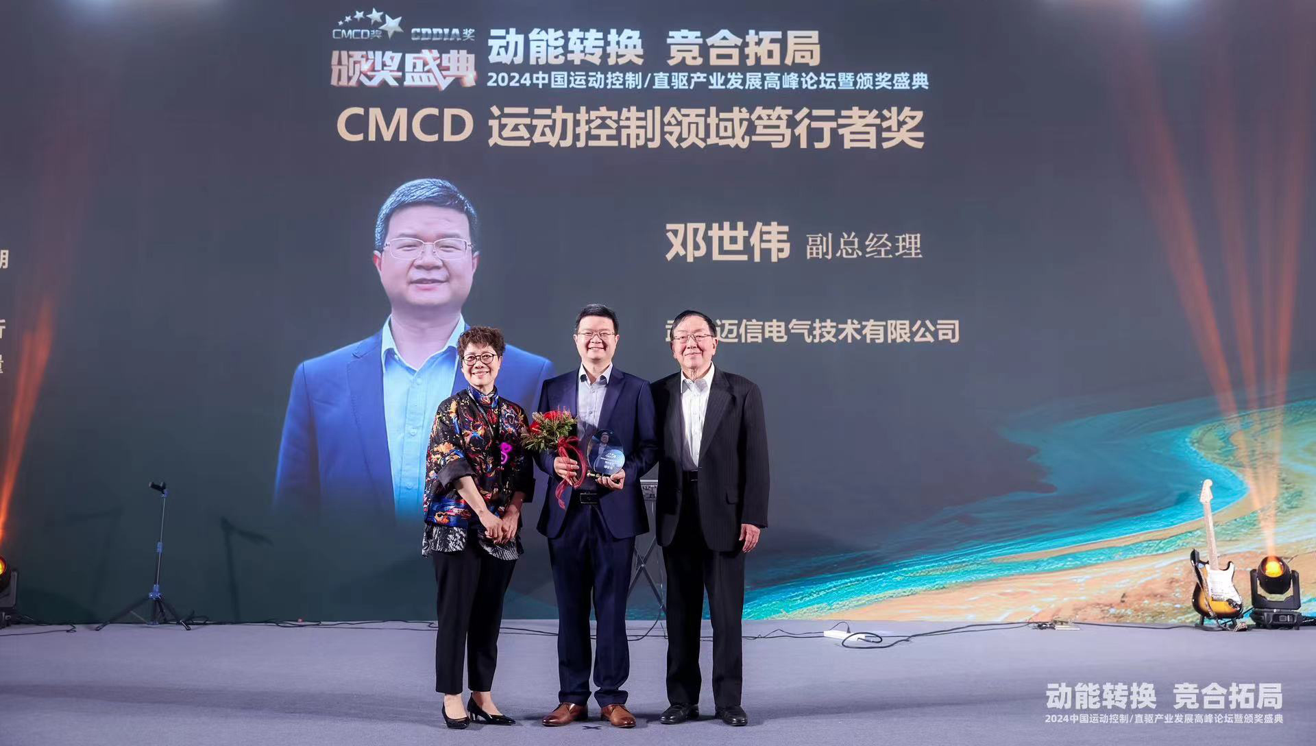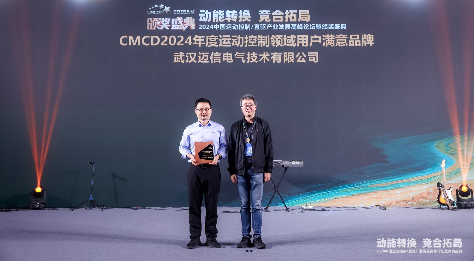 这场盛会汇聚了产业链各路菁英,共同探讨新旧动能转换的商机与对策,见证中国工控自动化行业的新征程。在此次盛会上,迈信电气凭借其卓越的品牌影响力和技术创新能力,荣获“CMCD 2024年度运动控制领域用户满意品牌”。公司副总经理邓世伟荣获“2024CMCD运动控制领域笃行者奖”,表彰他在推动运动控制行业发展做出的杰出贡献。