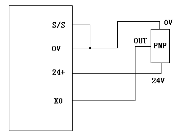A:把PNP型三线制接近开关的信号输出端接PLC的输入口如X0,PNP型接近开关的0V端接到PLC上的0V端子,还要把S/S端子跟0V端子短接起来,PNP型接近开关的+24V端接到PLC上的24+端子。如果是外接24V电源的话,那么把PNP型三线制接近开关的信号输出端接PLC的输入口如X0,PNP型接近开关的0V端接到外接24V电源的负,还要把S/S端子跟外接24V电源的负短接起来,PNP型接近开关的+24V端接到外接24V电源的正。