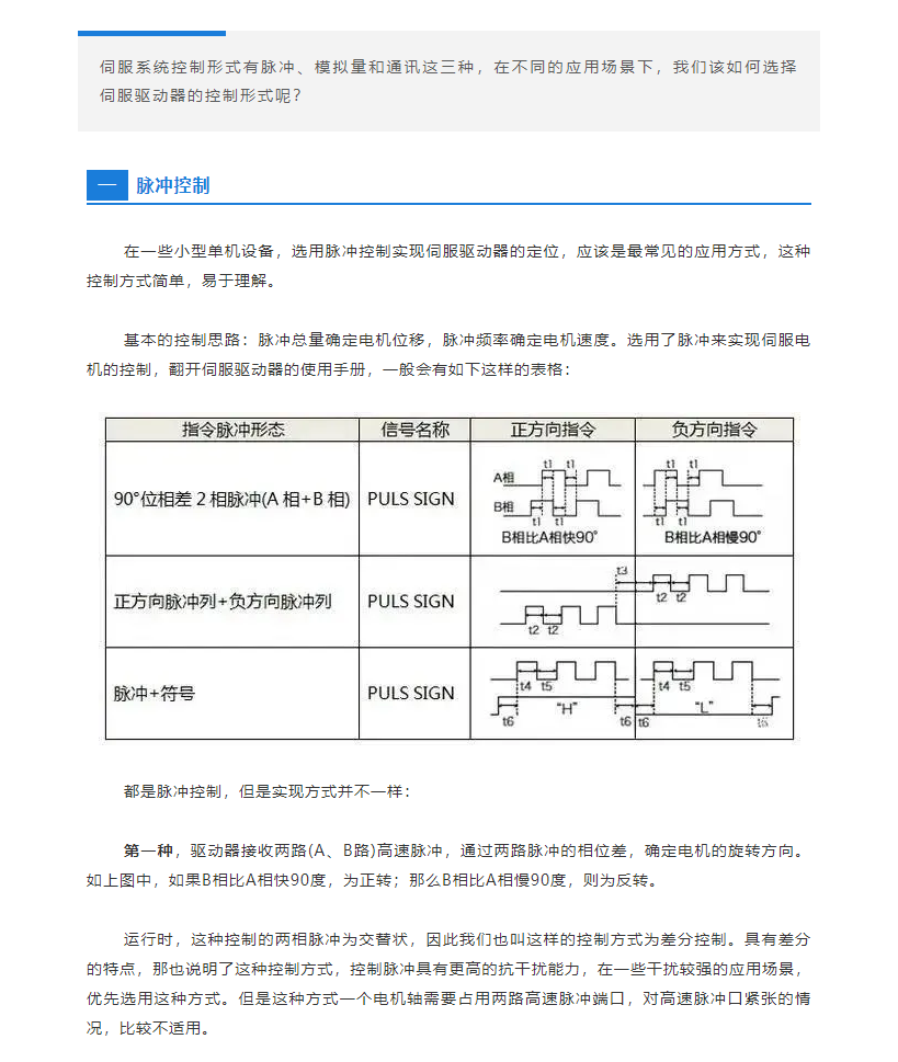 伺服系统如何选择脉冲、模拟量、通讯三种控制形式?