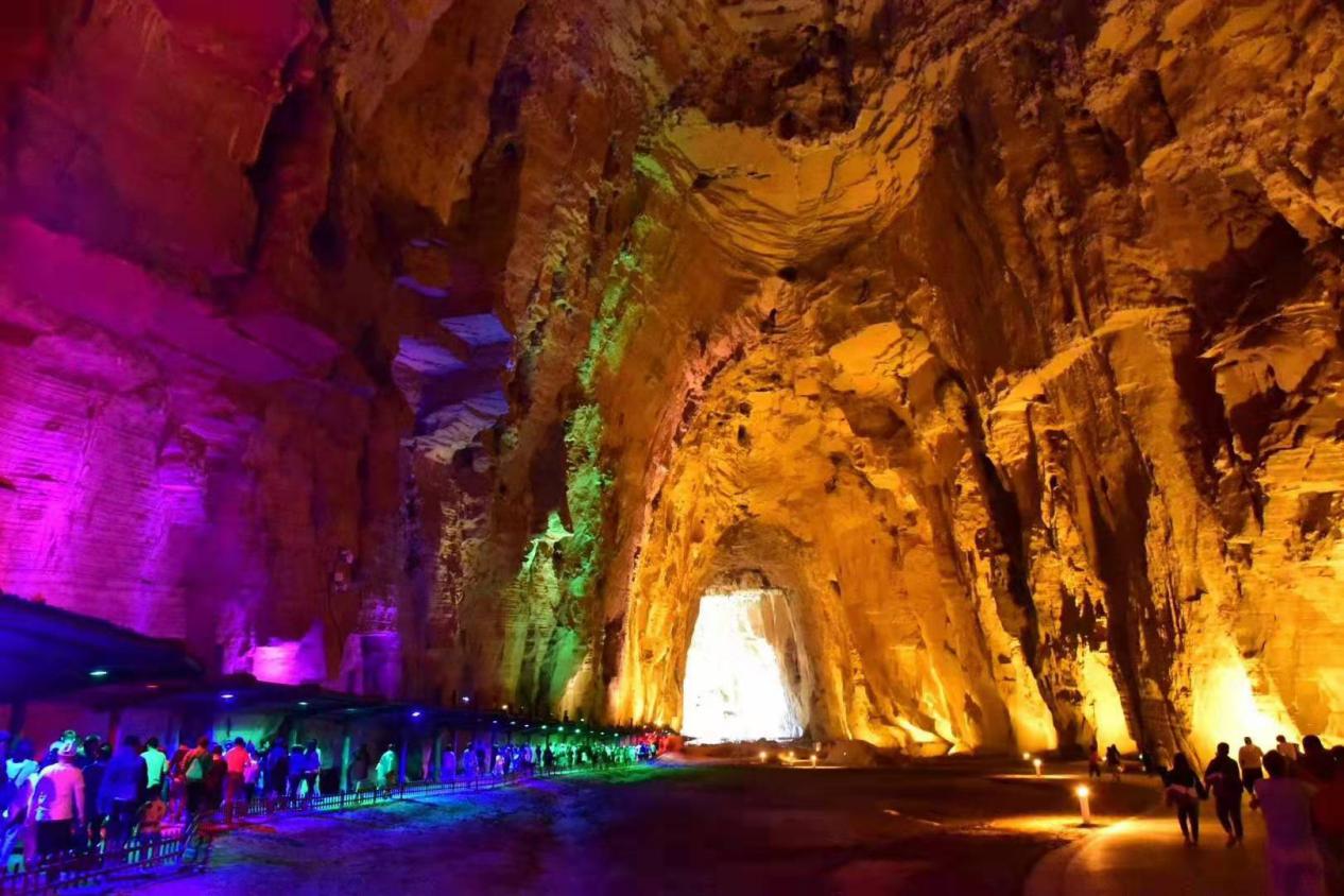 恩施州,别名世界硒都,这里民族特色浓郁,风景秀丽,气候宜人,是每个热爱旅行的人都想去一睹其充满神秘色彩的地方。2019816日,我们怀着无比激动的心情乘坐动车前往此次旅行的第一站—恩施州利川市。在动车到达恩施州境内时,车窗外开始出现连绵不断的丛山,可是一个接一个的隧道让大家不得不把目光从外面的景色中收回来。终于走完隧道,重新能看到外面的阳光和山峰时,四个多小时的车程也结束了,我们到达充满期待的神秘之旅利川市。在导游的带领下吃完午饭后,我们就坐大巴去游览世界六大特级溶洞之一的腾龙洞。在大巴车上,大家都精神抖擞的听着导游对腾龙洞的介绍,以及游览过程中哪些要注意的事项,兴奋得在脑海中浮现的腾龙洞的奇特景象把一上午坐车的劳累都抛诸脑后了。