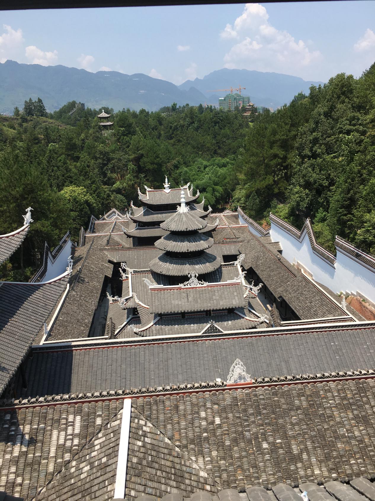 在恩施市中心吃完午饭后,我们前往最后一个旅游景点恩施土司城。尽管艳阳高照,热浪袭人,可是依旧阻挡不了大家去土司城的热情。因为土司城是目前全国规模最大、工程最宏伟的反映封建社会统治者以蛮制蛮的土司制度的标志性仿古建筑群,是土家文化的重要标志,拥有着“中华土家第一城”的美誉。我们在导游的带领下,参观了钟鼓楼、土司王府、廪君祠、墨冲楼等景点,虽历经沧桑,饱经风雨,但建筑整体依然气势恢宏。土司文化的神秘面纱和传统习俗在导游的细致介绍中生动的呈现在我们眼前,如此具有地方特色的建筑群,只是来回参观一下的话,我们只会感叹建筑的鲜明民族特点,但是经过导游的详细讲解,这些建筑群则变得非常有文化底蕴,民族特色异常浓郁。